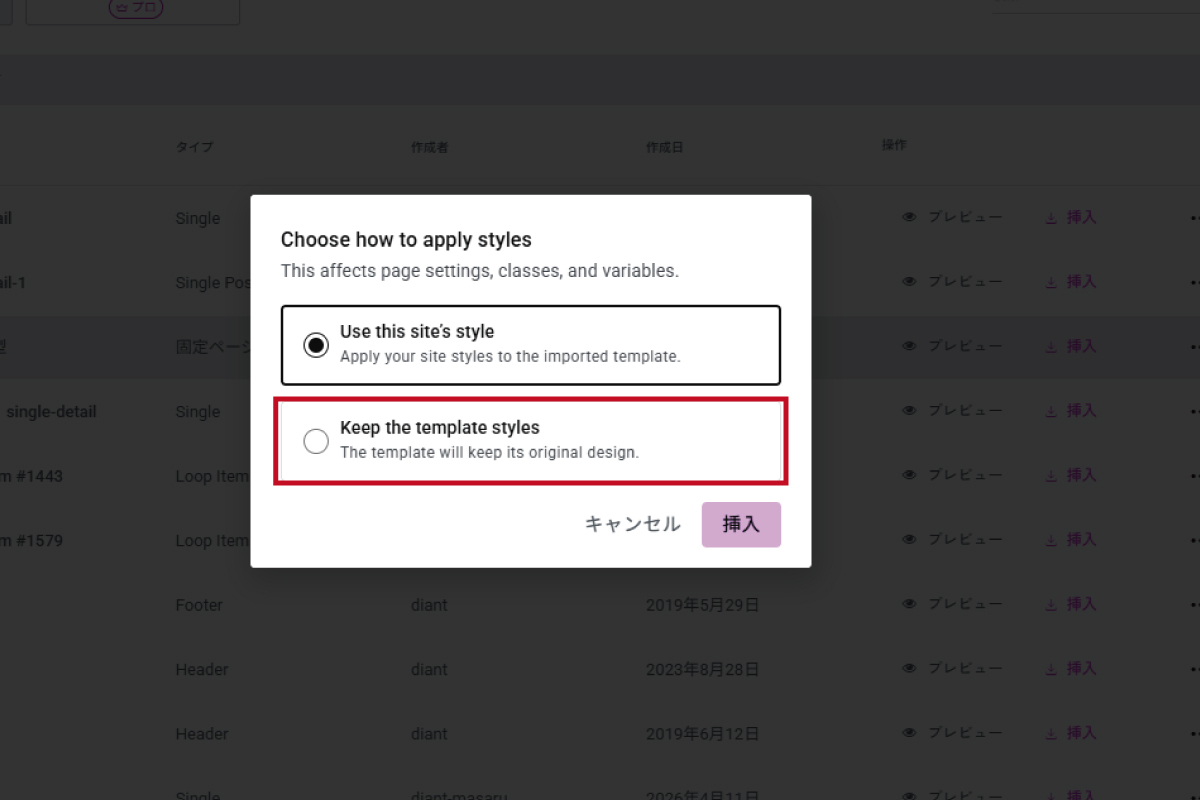 4.確認画面が出た場合は、「Keep the template styles」をクリックしてください。