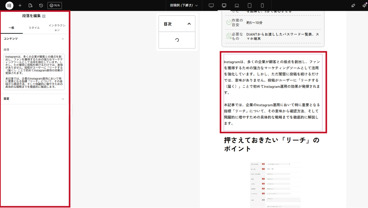 3.このテキストエディター内の文章を打ち変えると、右側の実際の画面にも反映されます。